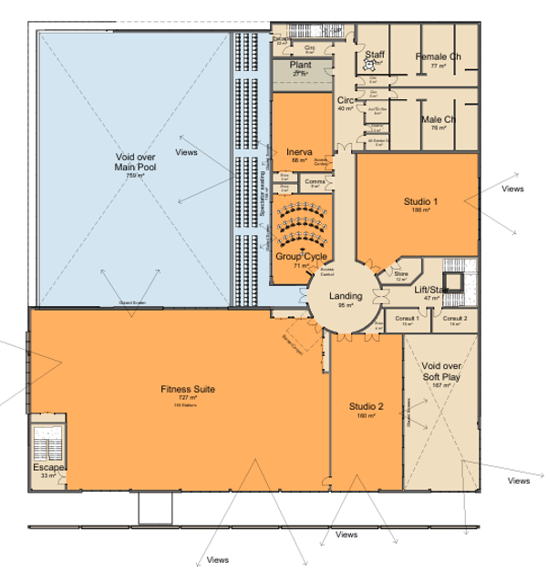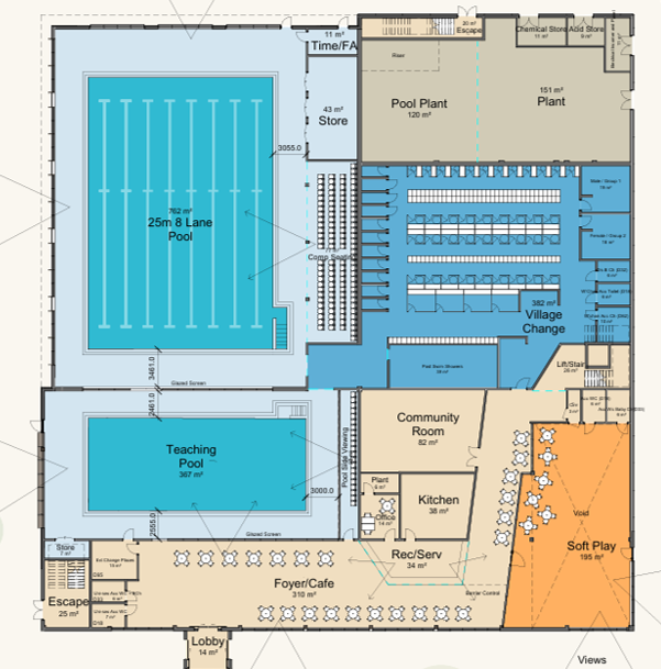 The scheme includes an eight-lane, 25-metre pool, a 20-metre learner pool, and a full fitness suite. Plans also include a play facility for families, exercise studios, public health and community spaces, a café, disability changing places facilities and more.